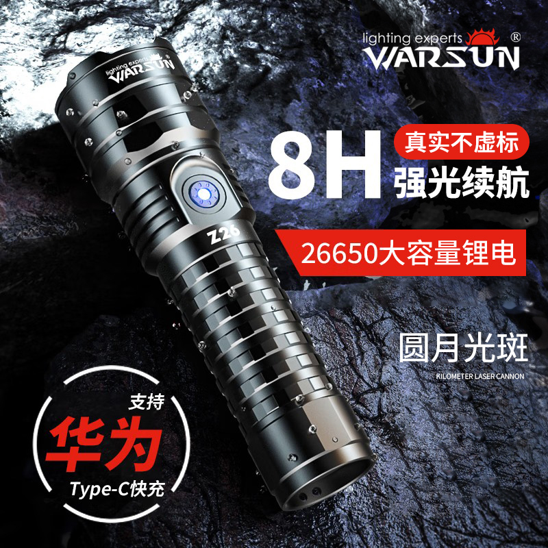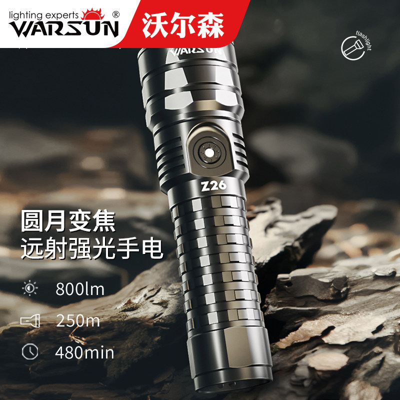 沃尔森(WARSUN)Z26强光手电筒变焦远射超亮充电家用便携户外骑