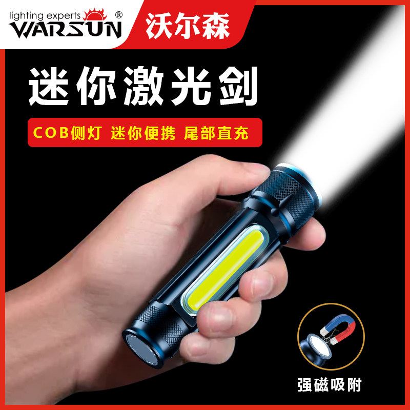 沃尔森迷你手电筒强光充电超亮小便携户外远射小型LED磁吸工作灯