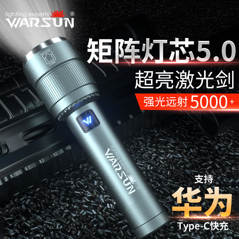 Warsun手电筒多功能强光手电超亮远射led可充电非氙气防水探照灯