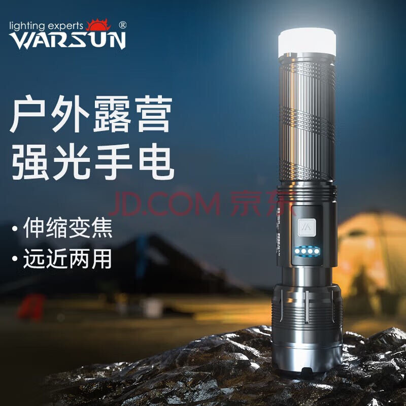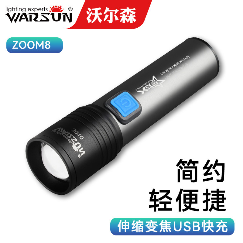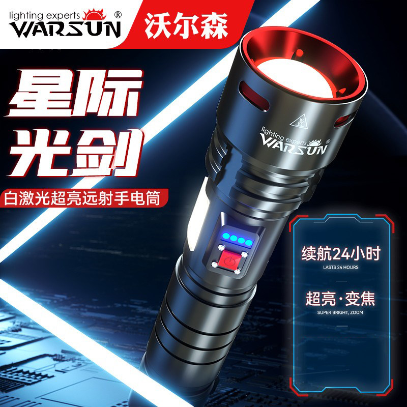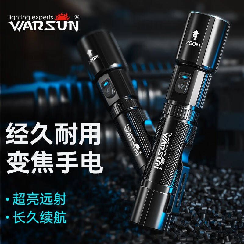 Warsun手电筒多功能变焦强光手电超亮远射led可充电非氙气防水探