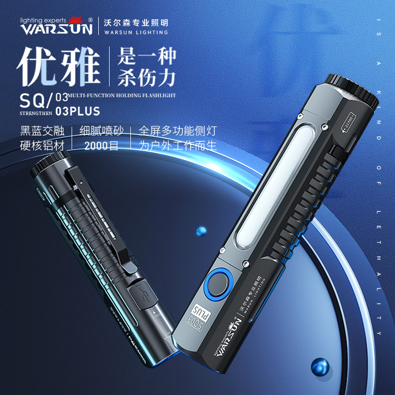 Warsun沃尔森SQ03手电筒强光手电超亮远射led可充电非氙气多功能