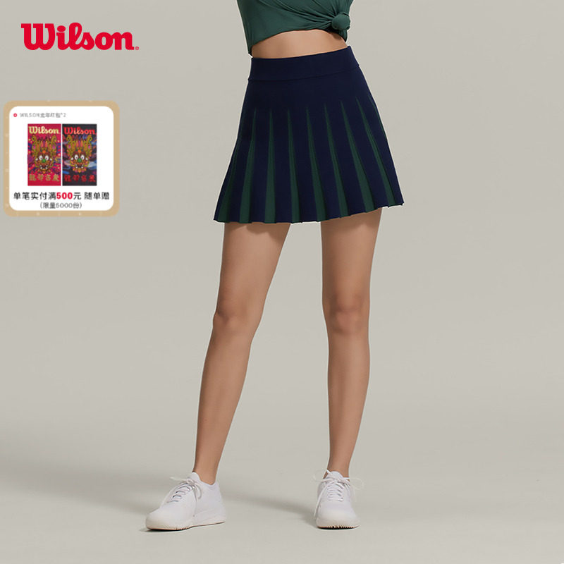 Wilson威尔胜官方夏季女子内置底裤 网球运动半身裙简约A字针织裙