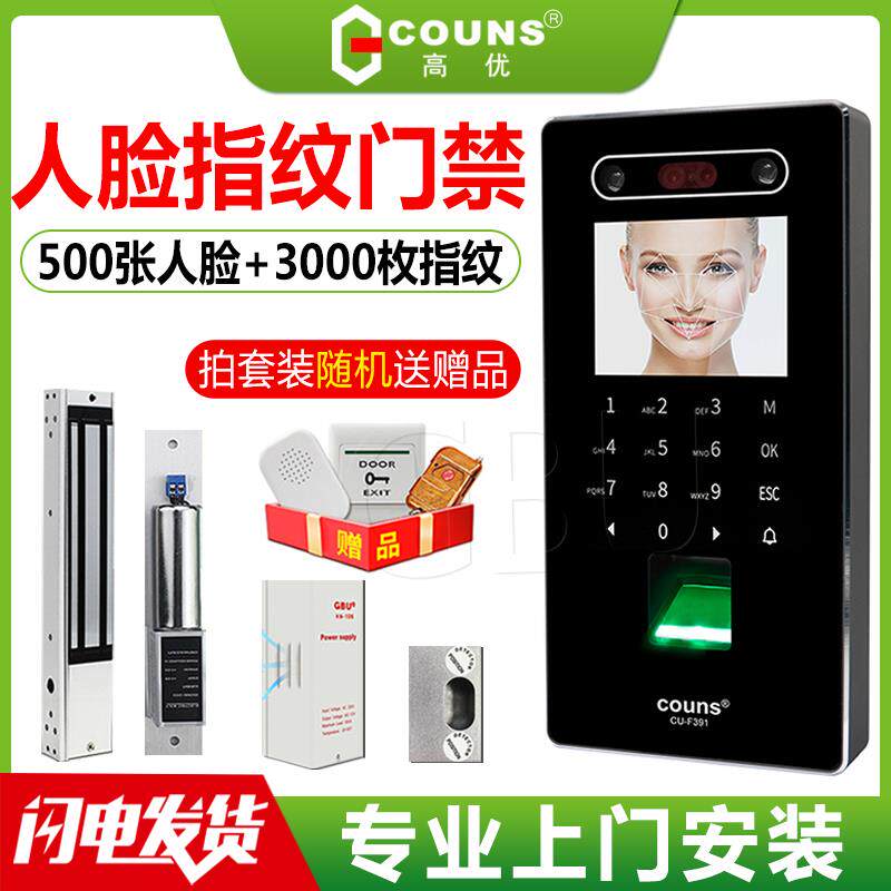 高优F392人脸识别门禁系统套装考勤一体机玻璃大门指纹电子密码锁