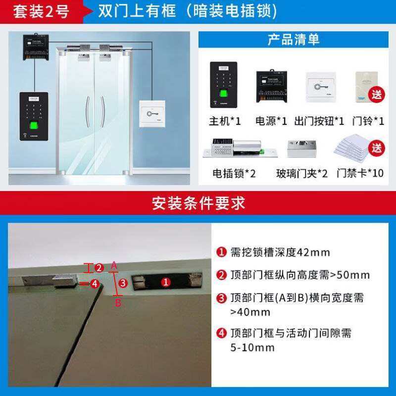 高优K08门禁系统套装一体机公司单双开玻璃门电子密码磁吸力插锁