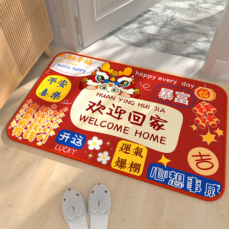 龙年地垫2024入户门脚垫门口进门防滑垫子地毯入门家用红色门垫