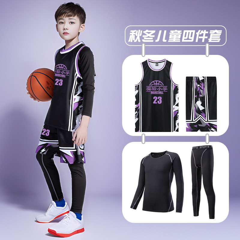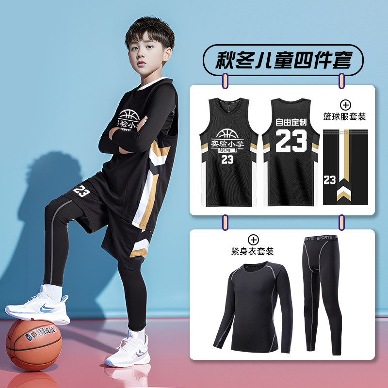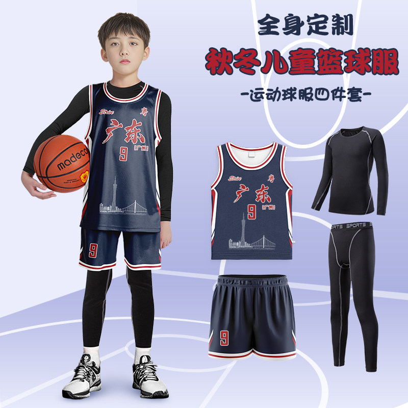 儿童篮球服男童定制秋冬小学生比赛训练服女孩打底四件套运动球衣