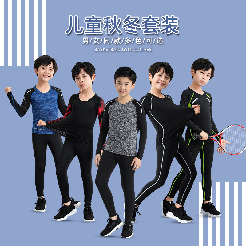儿童篮球紧身衣训练服男童运动套装秋冬季小学生足球服打底内搭衣