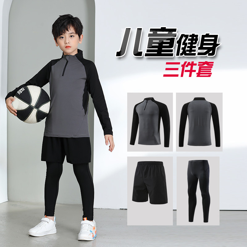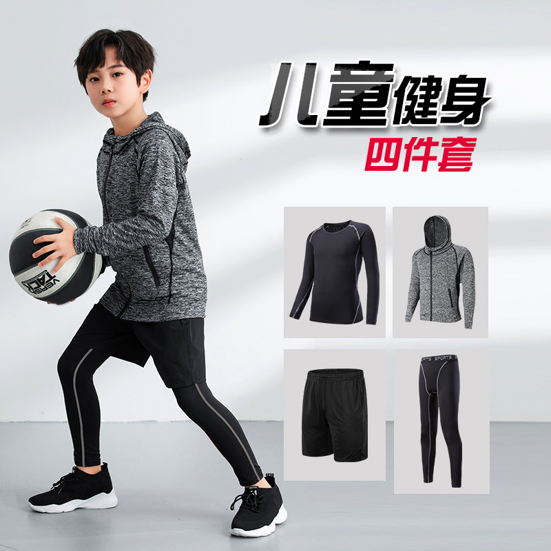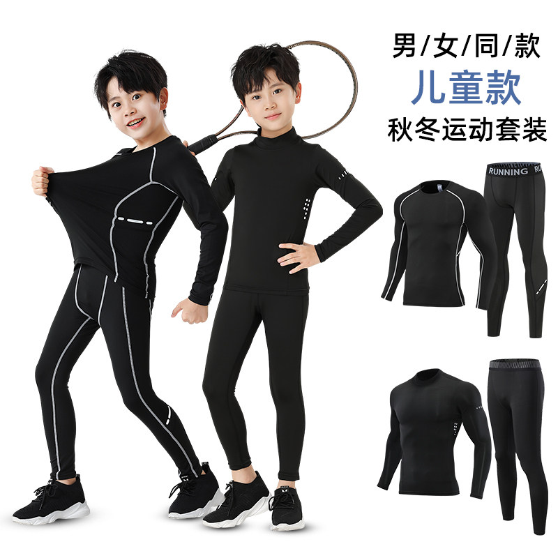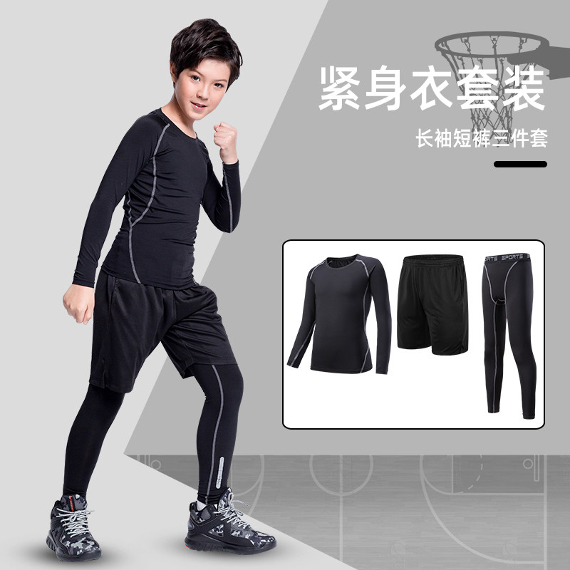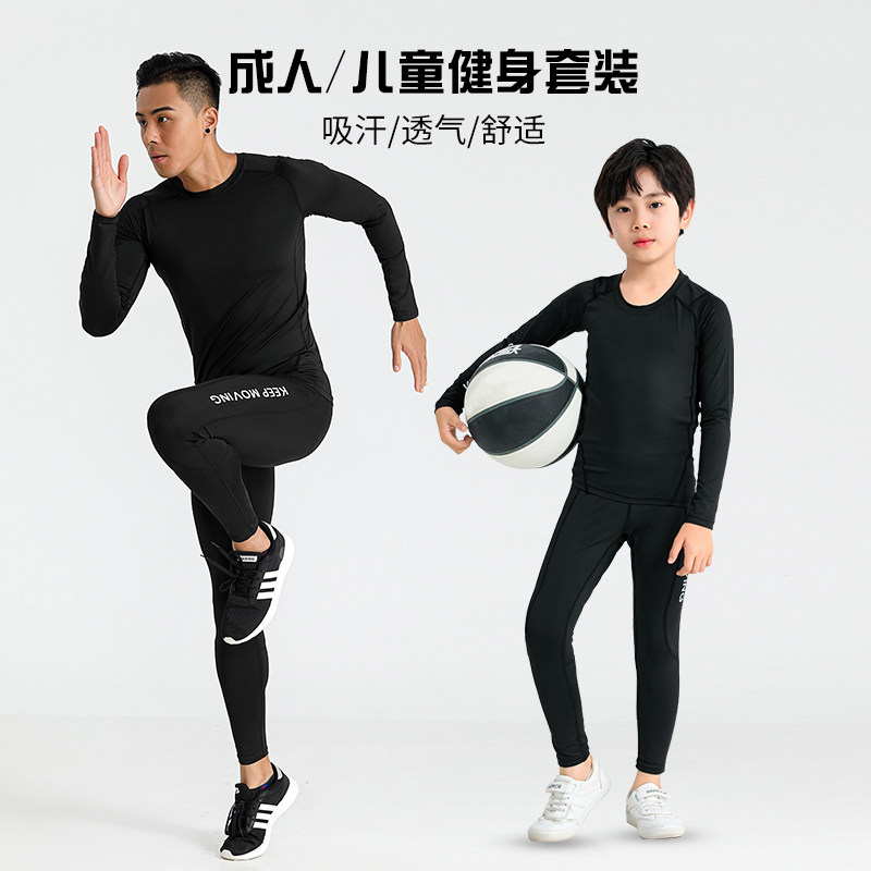 健身服套装男篮球紧身衣秋冬长袖运动内搭打底球服跑步儿童训练服
