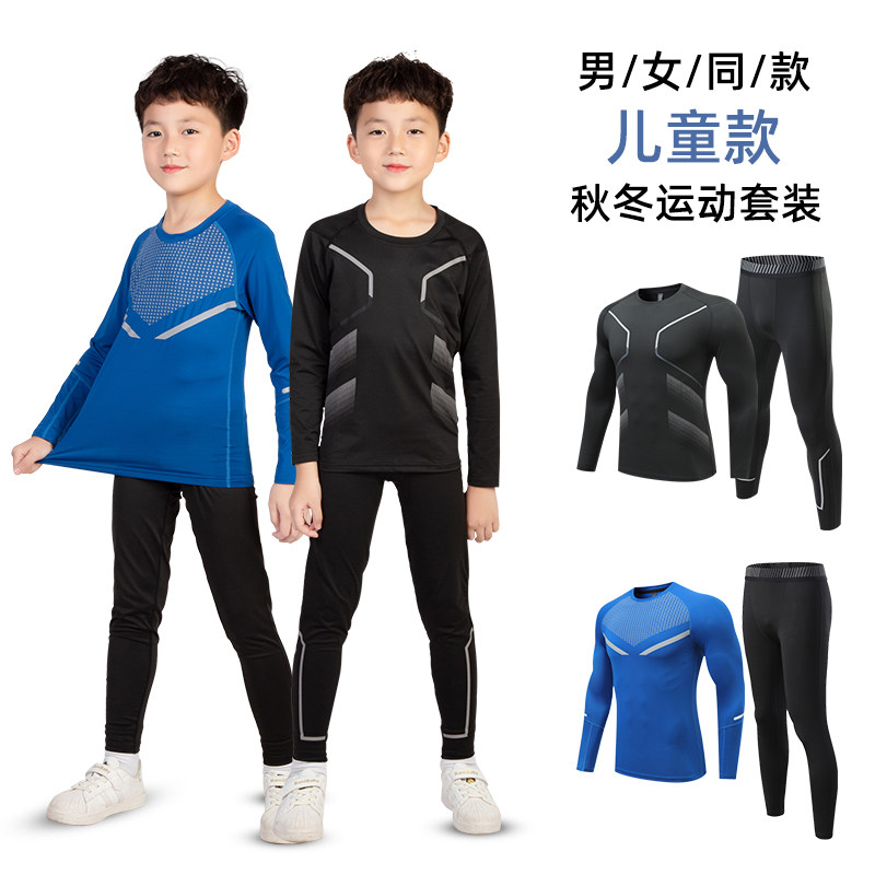 儿童篮球服套装男童女健身衣小学生球衣足球服秋冬季训练服紧身衣