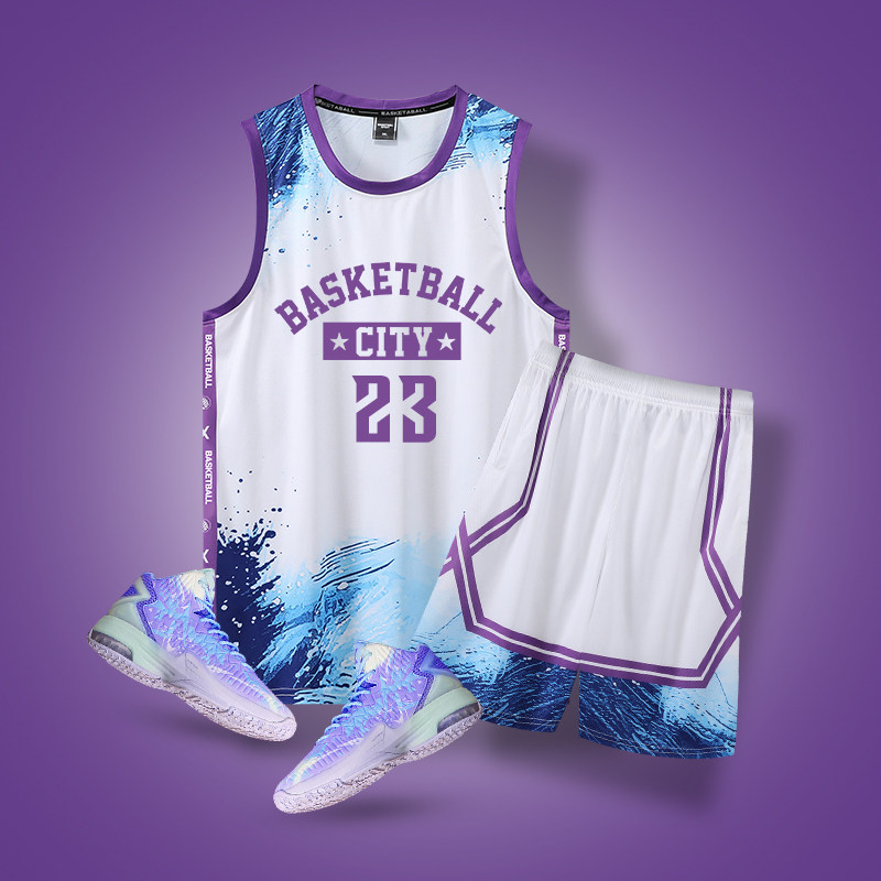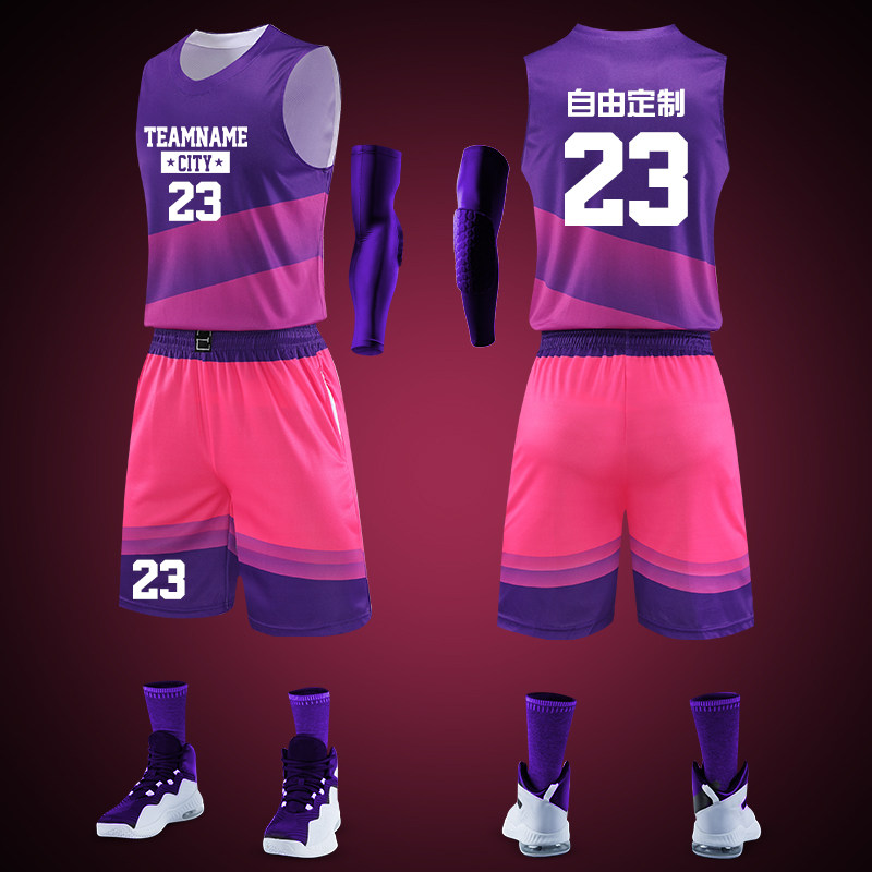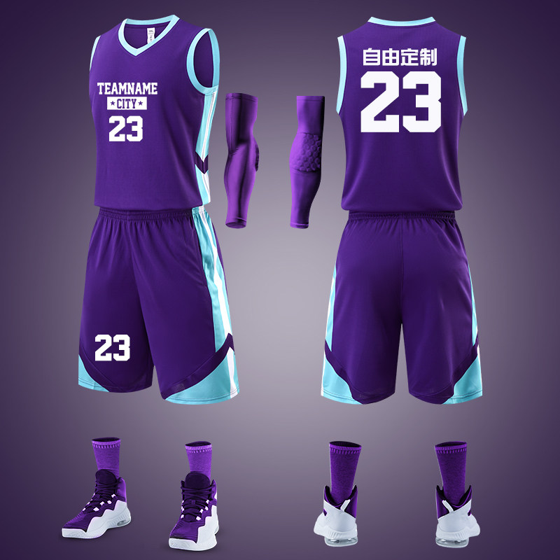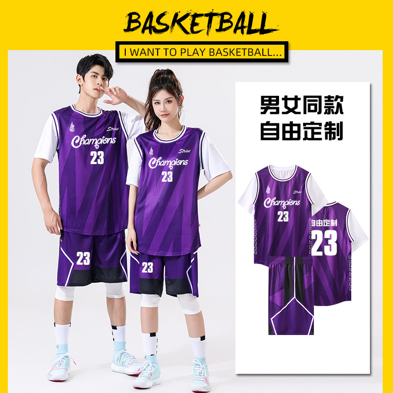 篮球服套装定制男大学生运动比赛短袖队服女生紫色印字训练篮球衣