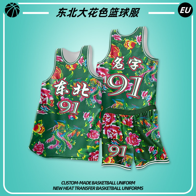 数码印篮球服套装男定制学生比赛队服成人运动训练服东北大花球衣