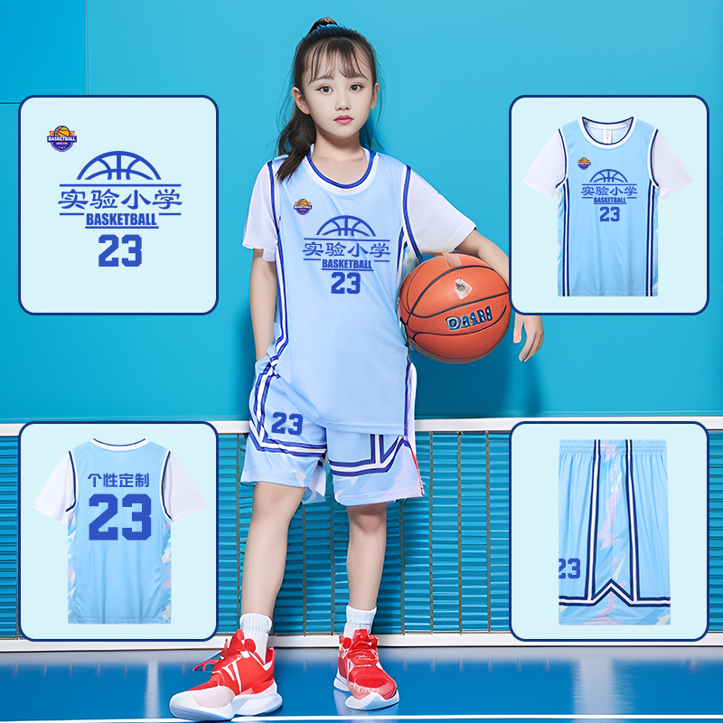 儿童篮球服套装定制男童小学生比赛训练服女孩假两件短袖运动球衣