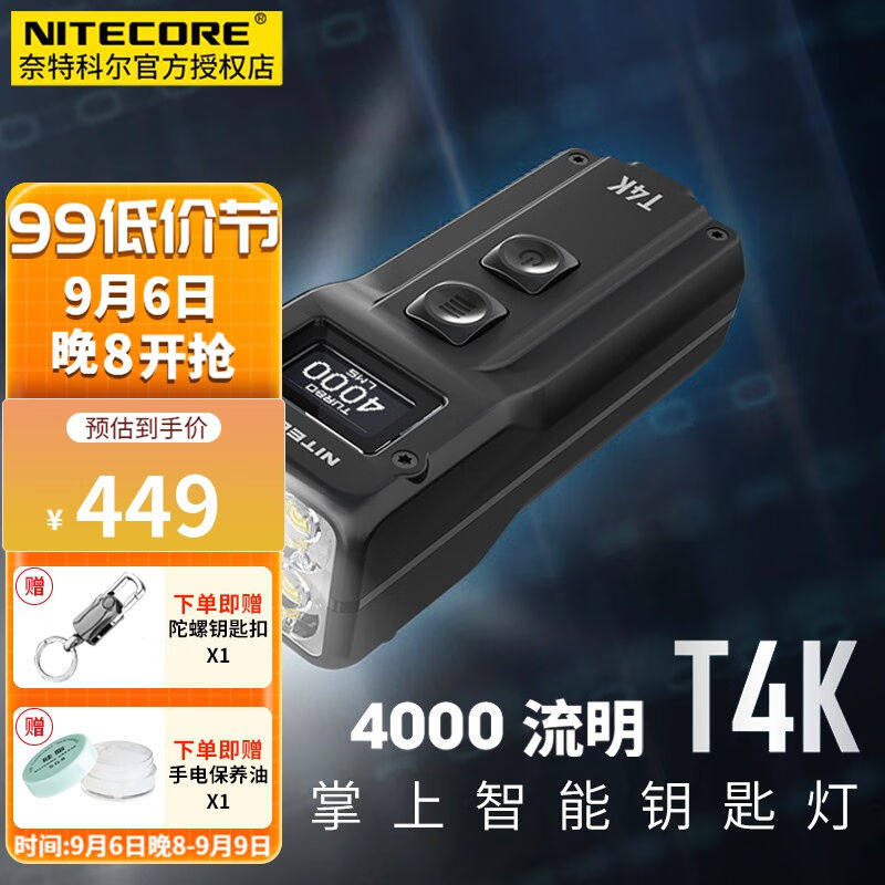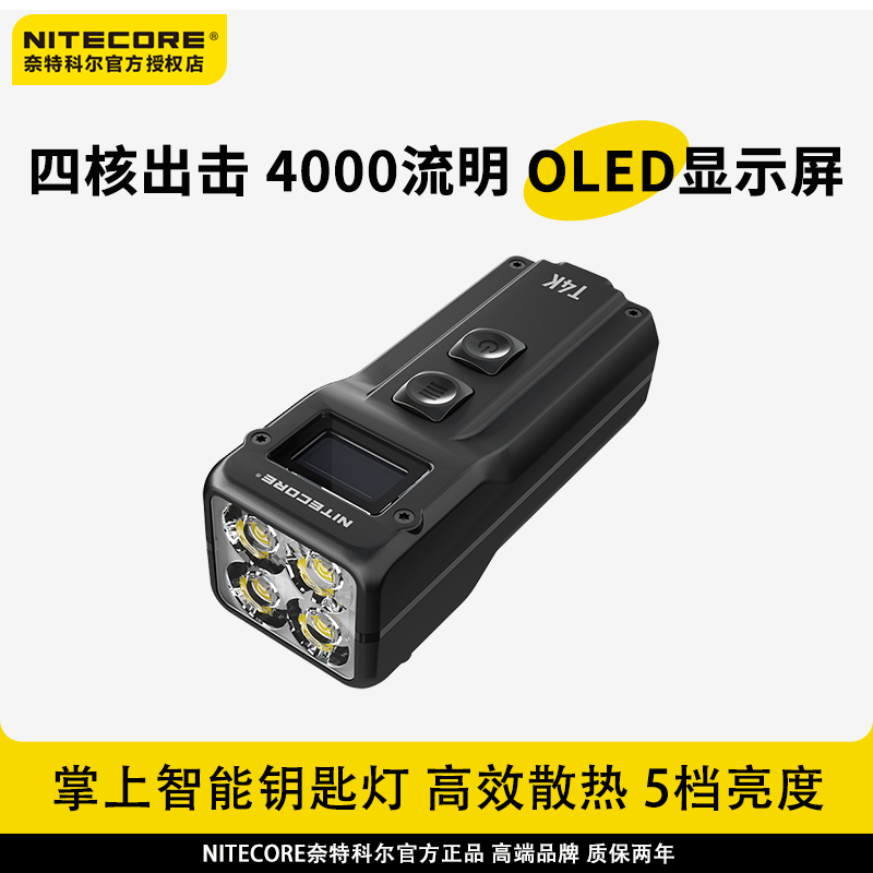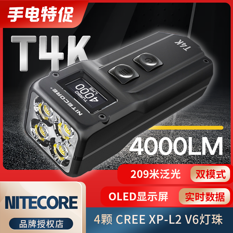 NITECORE奈特科尔T4K手电筒强光4000流明迷你小巧便携钥匙扣照明