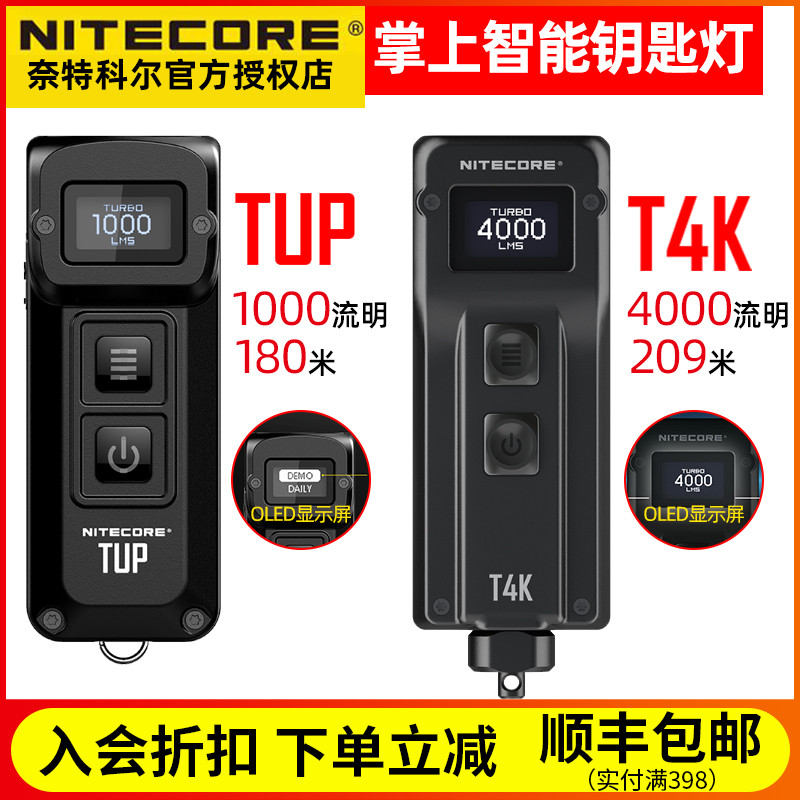 NITECORE奈特科尔TUP金属钥匙手电筒1000流明便携充电LED显示T4K