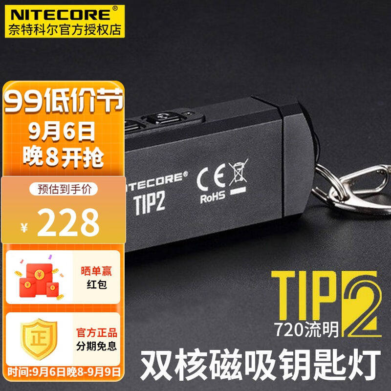 NITECORE奈特科尔TIP2手电筒小巧便携双核磁吸钥匙灯720流明USB充