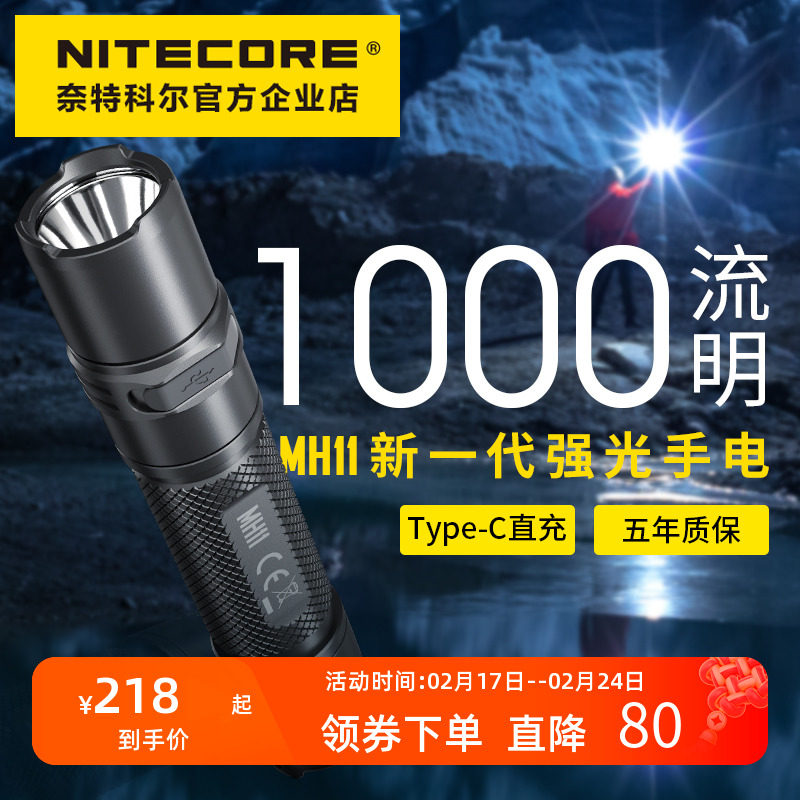 厂家NITECORE奈特科尔强光手电筒MH11户外便携Type-C充电便携老人