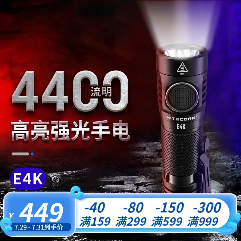 NITECORE奈特科尔 E4K迷你小型家用户外搜索超强光高亮便携手电筒