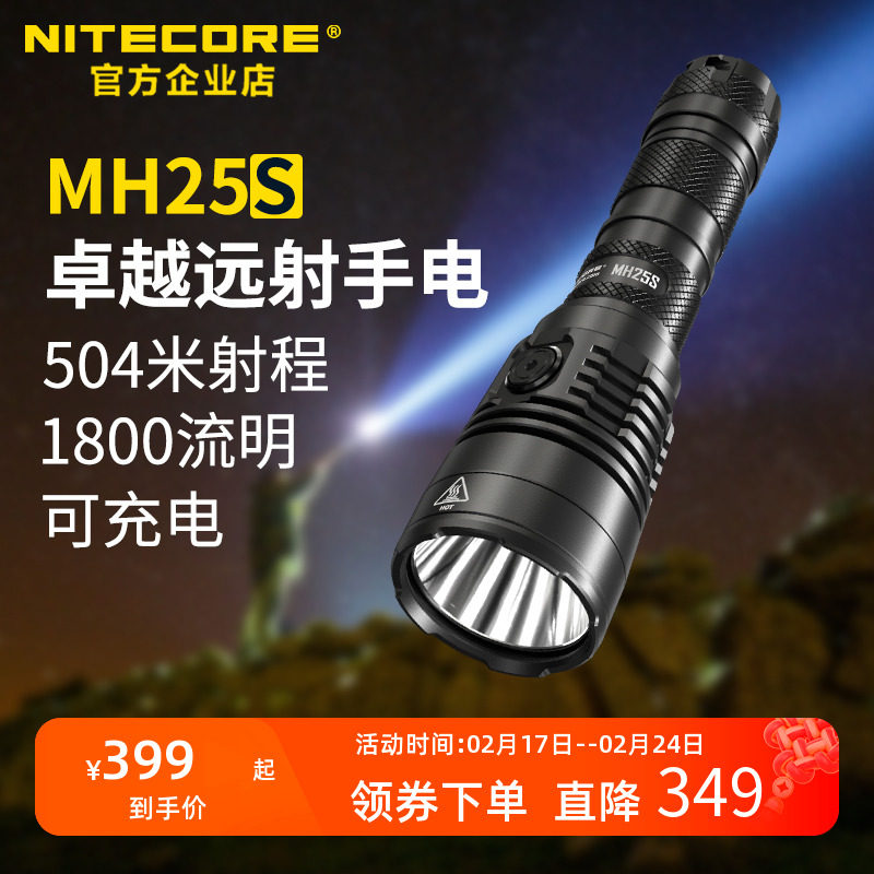 奈特科尔MH25S强光手电筒超亮远射户外便携式可充电聚光全铝耐用