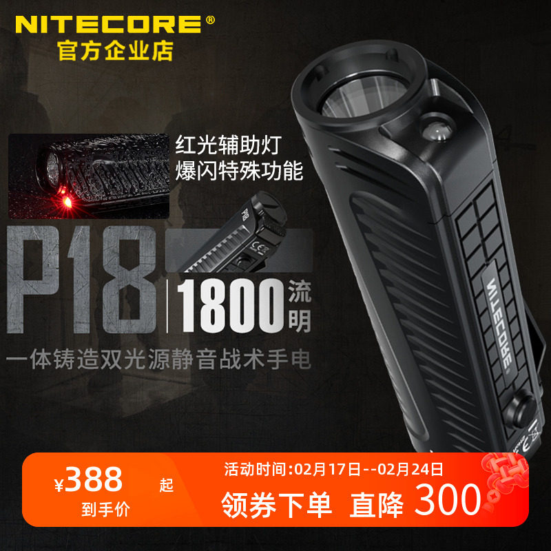 奈特科尔P18双光源一体铸造1800流明超亮静音NITECORE战术手电筒