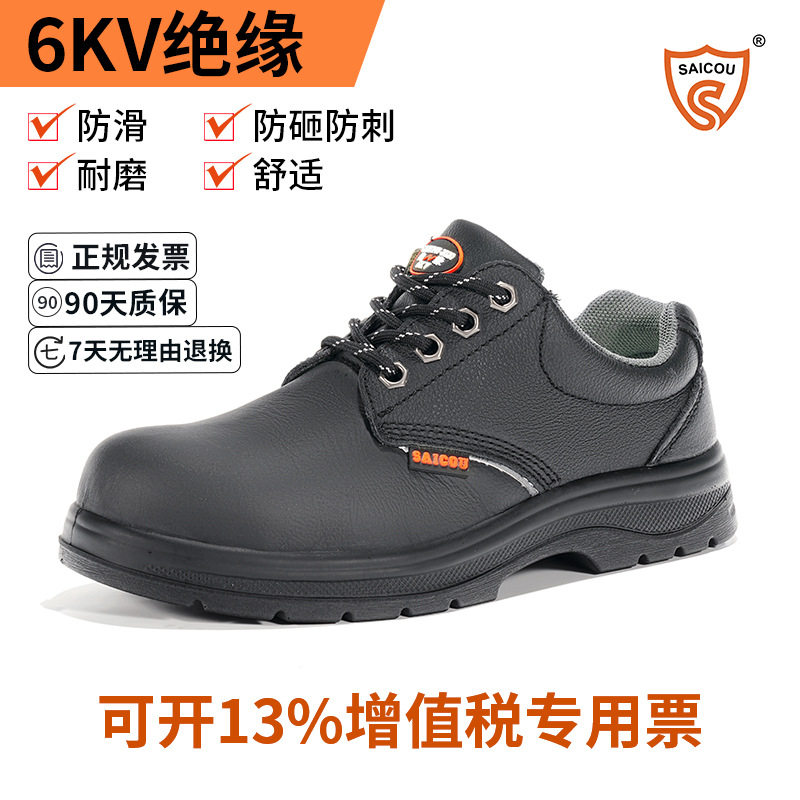 新四大仓配SAICOU牛劳保鞋防砸安全鞋6KV绝缘工作鞋透气安全电品