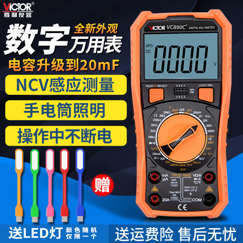 胜利万用表数字万能高精度电压多用表数显电表背光自动关机VC890E