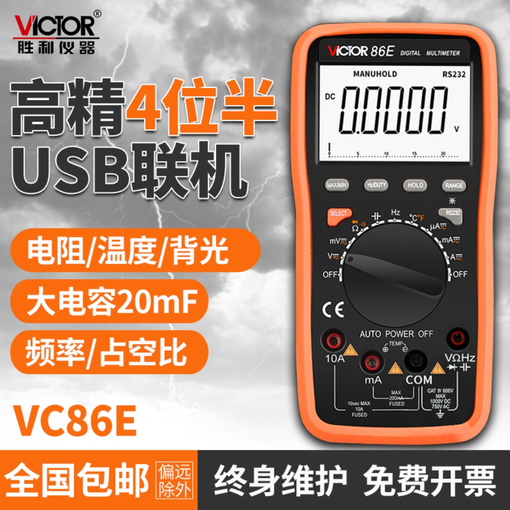 胜利VC86E高精度四位半万用表数字式万能表电容频率温度带USB联机