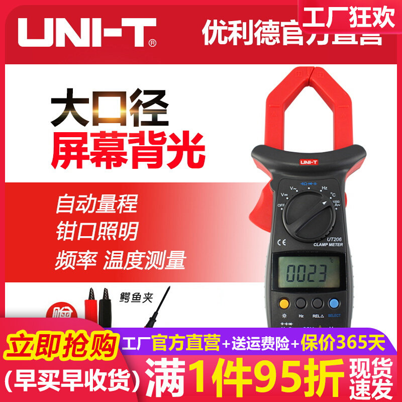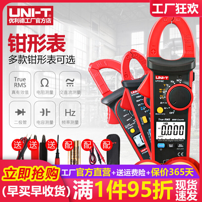 优利德UT202数字钳形万用表高精度交直流电流表多功能小型钳形表