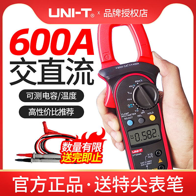 优利德UT201高精度钳形表万用表数字交直流电流表钳型钳流万能表
