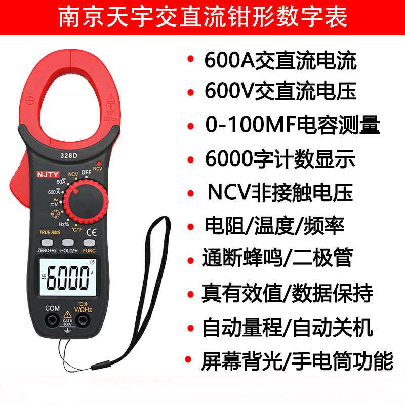 南京天宇TY-328D交直流钳形表电流电压温度频率电容NCV数字万用表