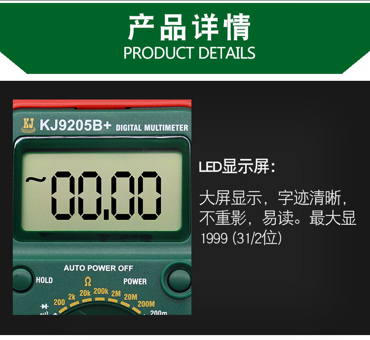 电工DT9205A高精度电子万用表数字万能表 万用电表防烧带自动关机