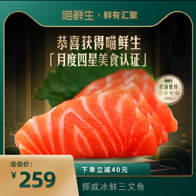 鲜有汇聚挪威新鲜三文鱼中段200g新鲜生鱼片即食海鲜辅食三文鱼肉
