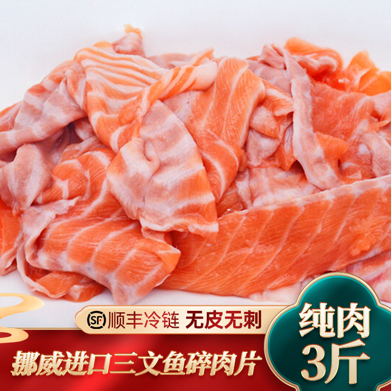 挪威三文鱼碎肉片3斤边角料褐色肉新鲜切冷冻大西洋鲑鱼无皮无刺