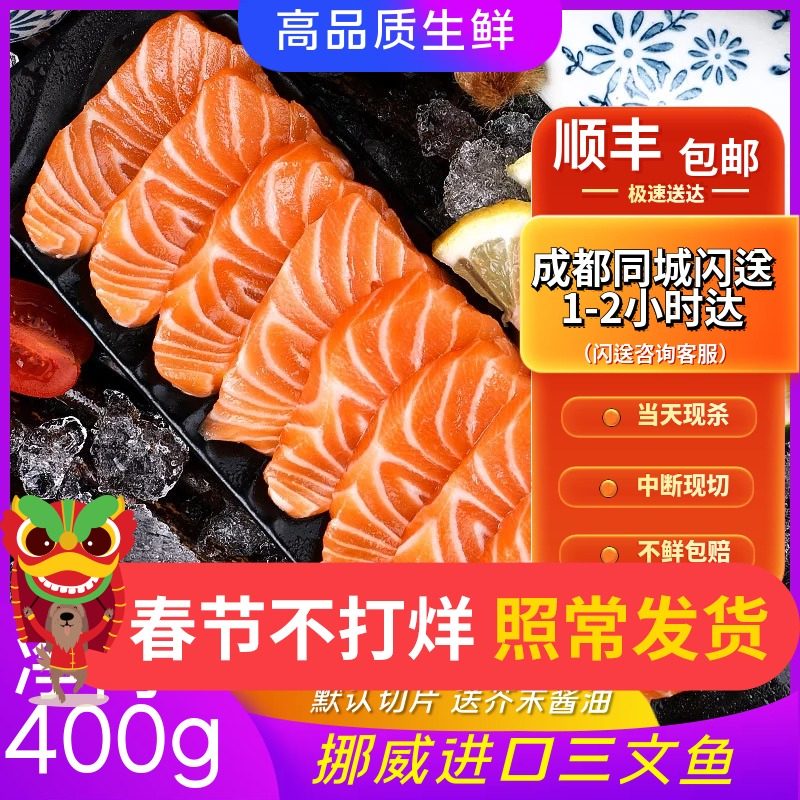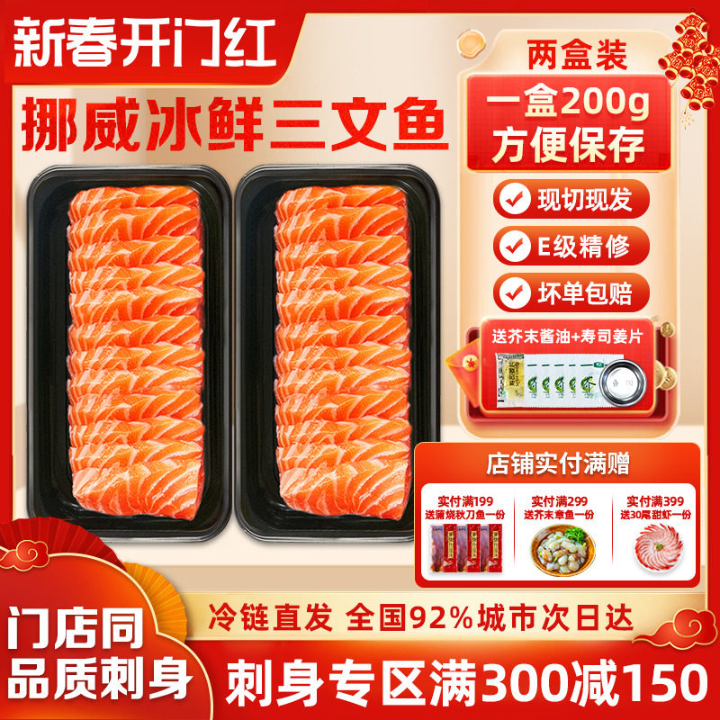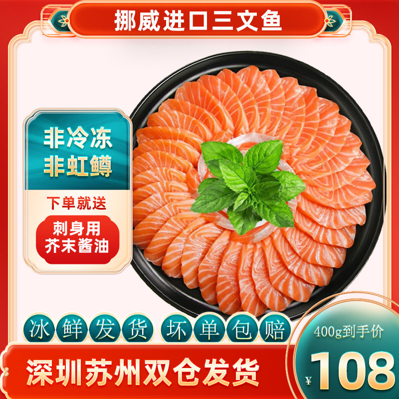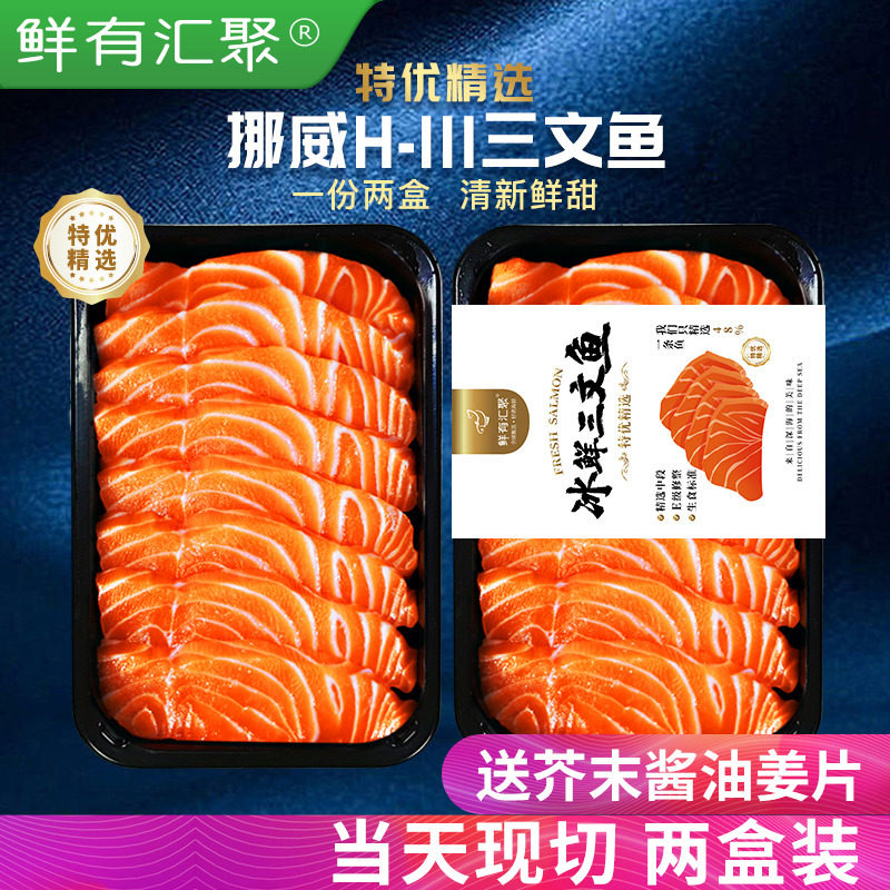挪威冰鲜三文鱼新鲜刺身生鱼片H111厂特优精选即食刺身海鲜三文鱼