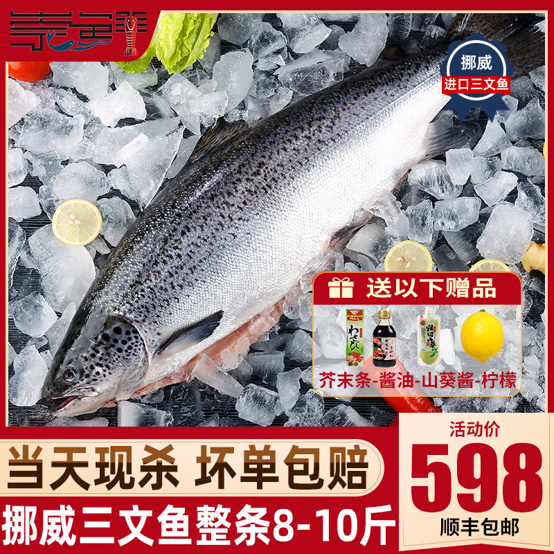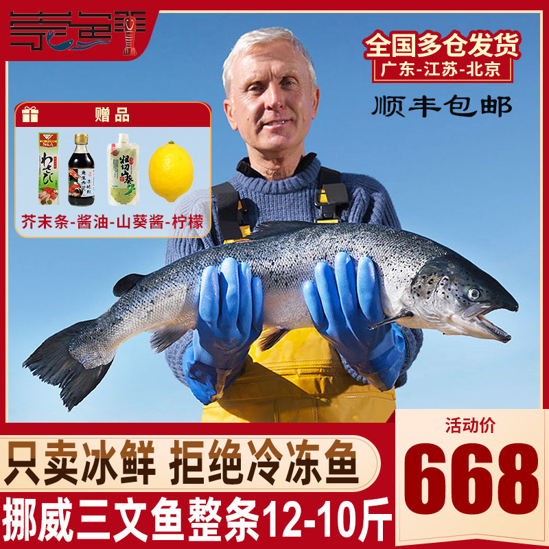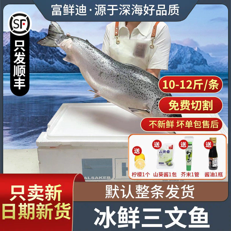 挪威进口冰鲜三文鱼12-10斤新鲜整条进口三文鱼中段刺身即食海鲜