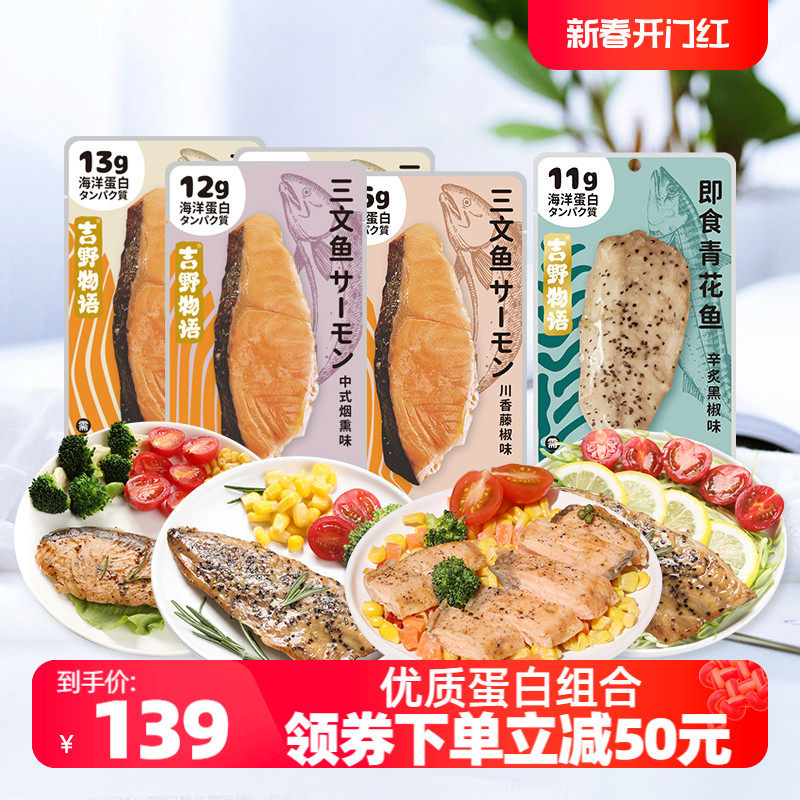 吉野物语优质蛋白组合三文鱼*6+青花鱼*6健身代餐即食高蛋白鱼肉