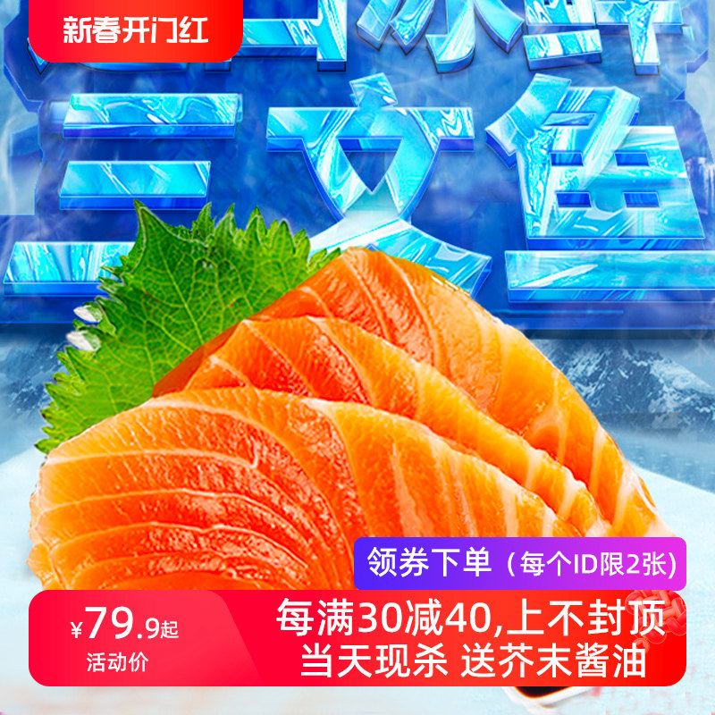 冰鲜三文鱼整条纯中段拼盘新鲜生鱼片现切生鲜鲑鱼肉即食顺丰包邮