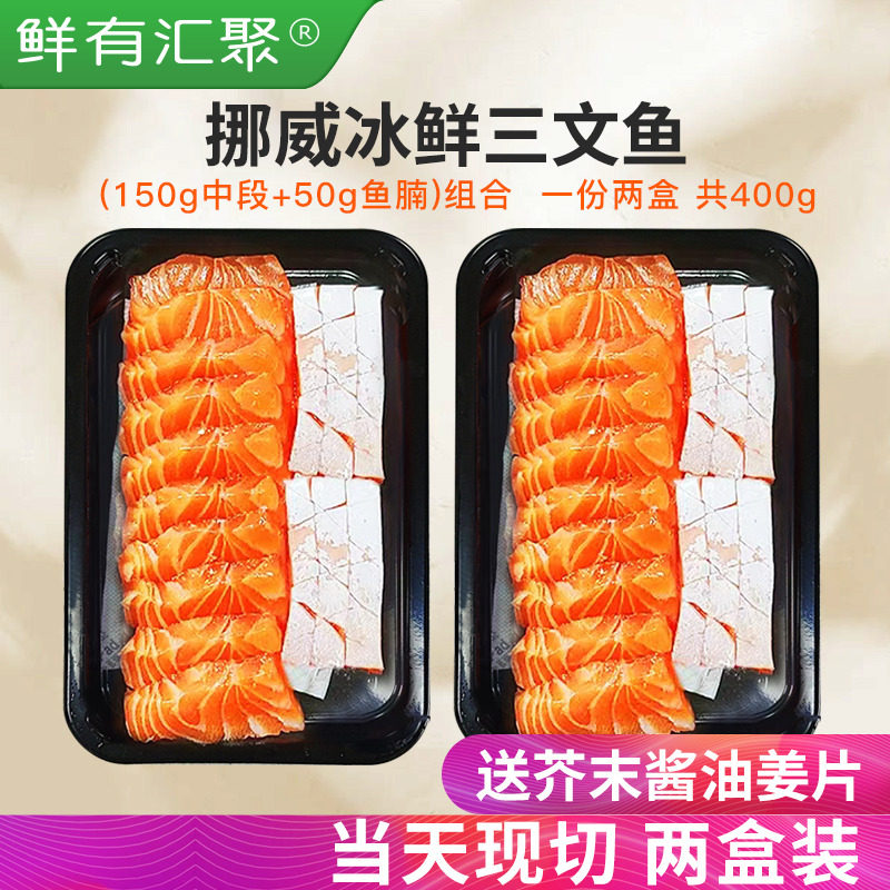 现切现发冰鲜挪威三文鱼+鱼腩双拼400g 生鱼片刺身组合刺身套餐