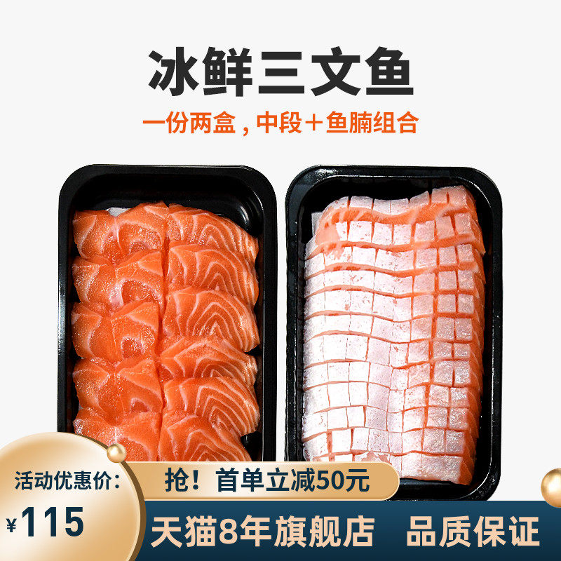 现切现发新鲜三文鱼刺身整条挪威厚切冰鲜生鱼片顺丰中段鱼腩组合
