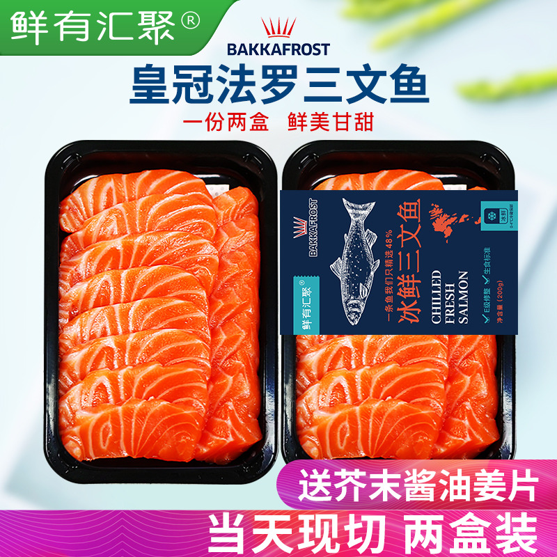 法罗群岛冰鲜三文鱼新鲜刺身生鱼片高脂鱼腩即食刺身海鲜 三文鱼