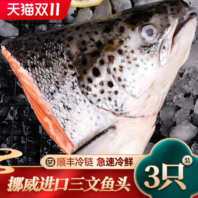 挪威三文鱼头3斤新切冰鲜冷冻大西洋鲑鱼边角料超大烧烤炖汤食材