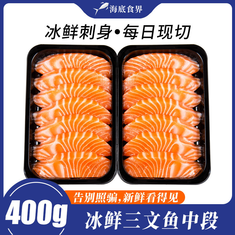 【400g刺身装】冰鲜三文鱼腩纯中段新鲜日料拼盘现切海鲜生鱼片鲜