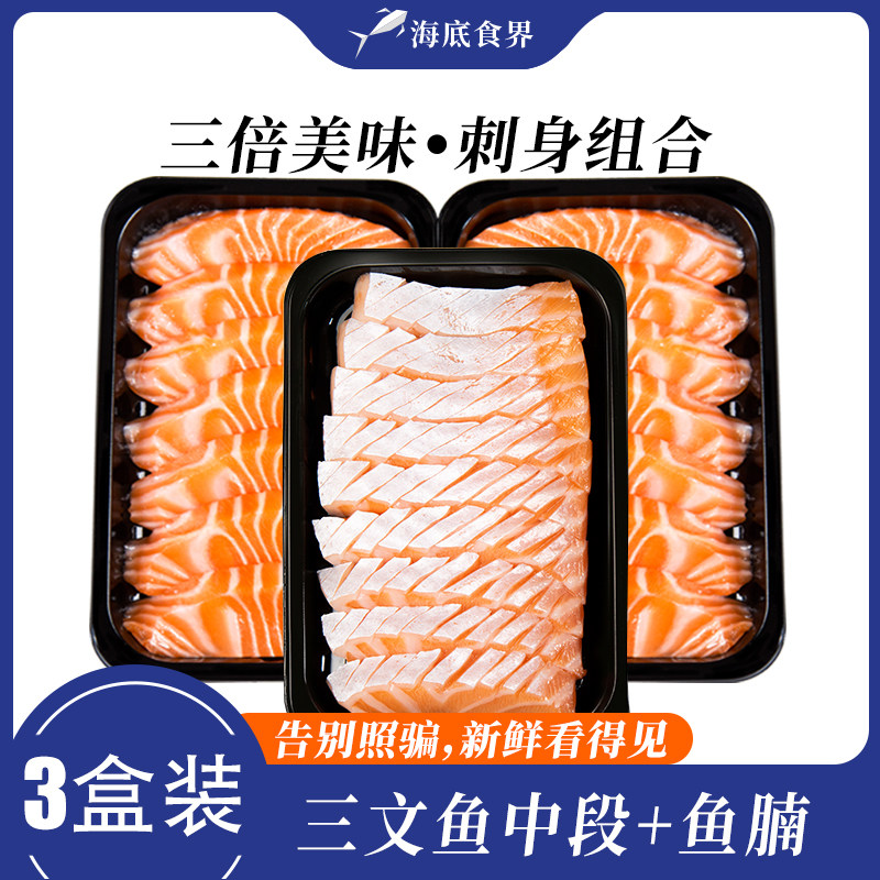 冰鲜挪威三文鱼刺身中段600g 3盒装 刺身拼盘新鲜生鱼片切片
