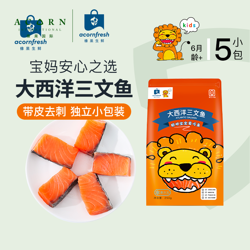 橡果生鲜海鲜大西洋三文鱼进口冷冻小包装250g送宝宝婴儿辅食谱