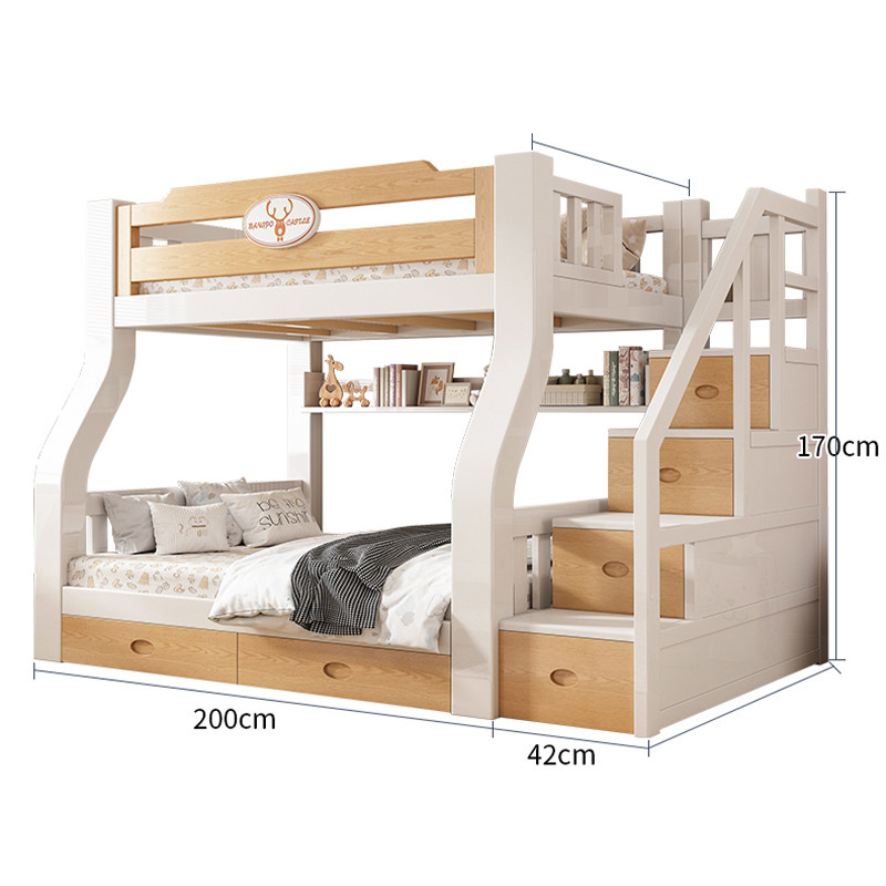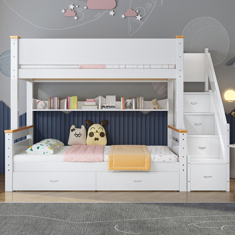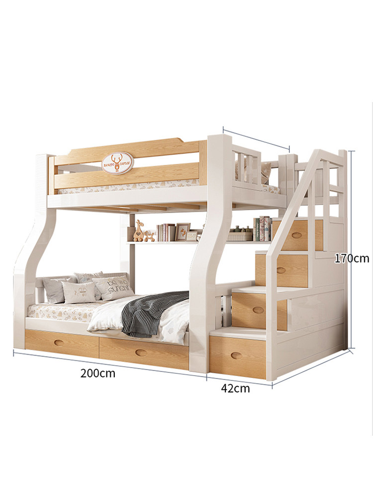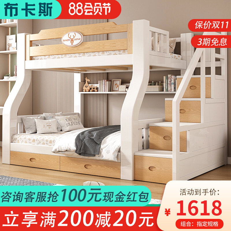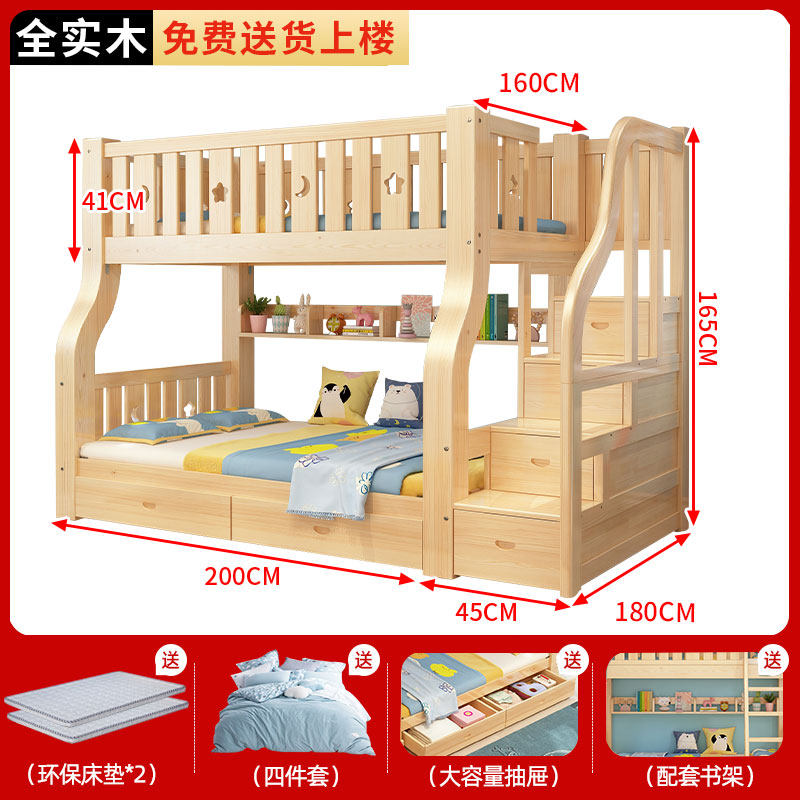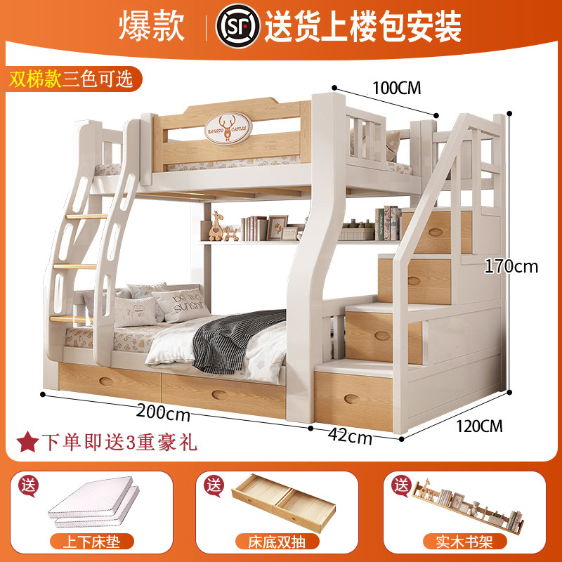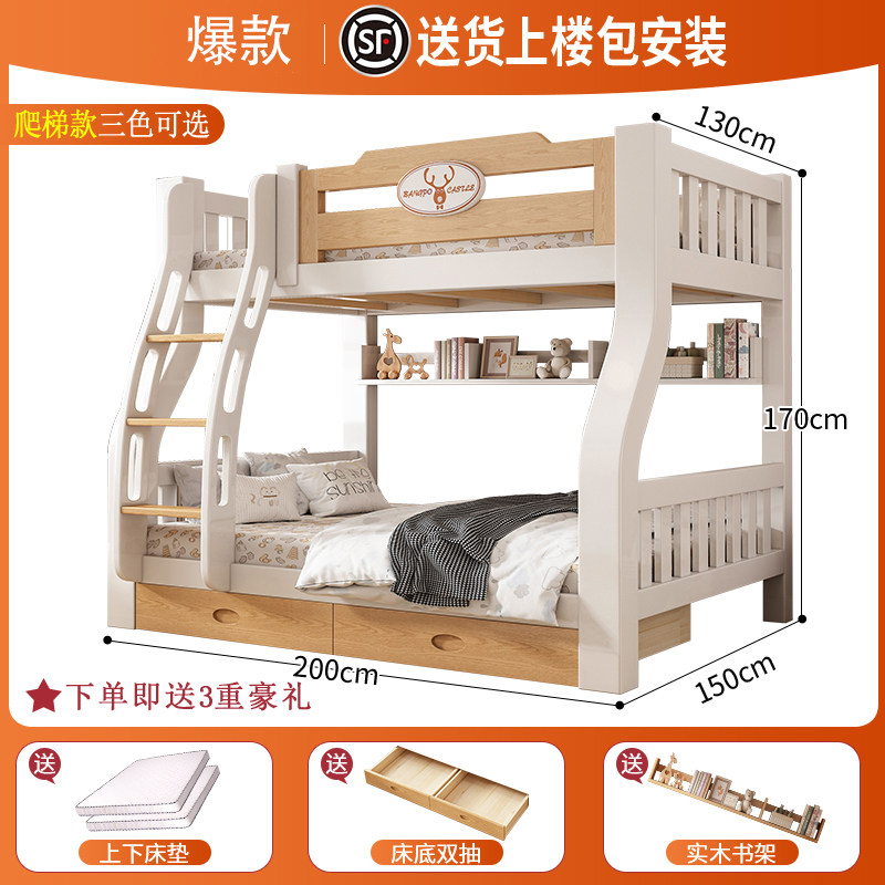 子母床蚊帐上下铺斜梯书架款1.5米1.2家用双层高低儿童上下床1.35