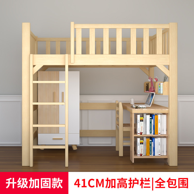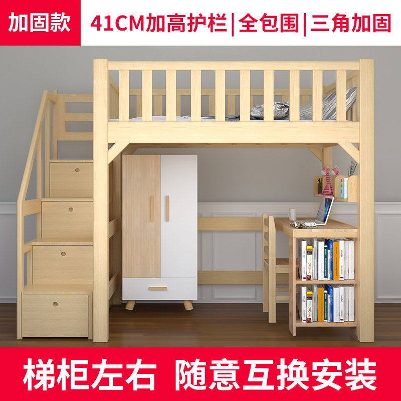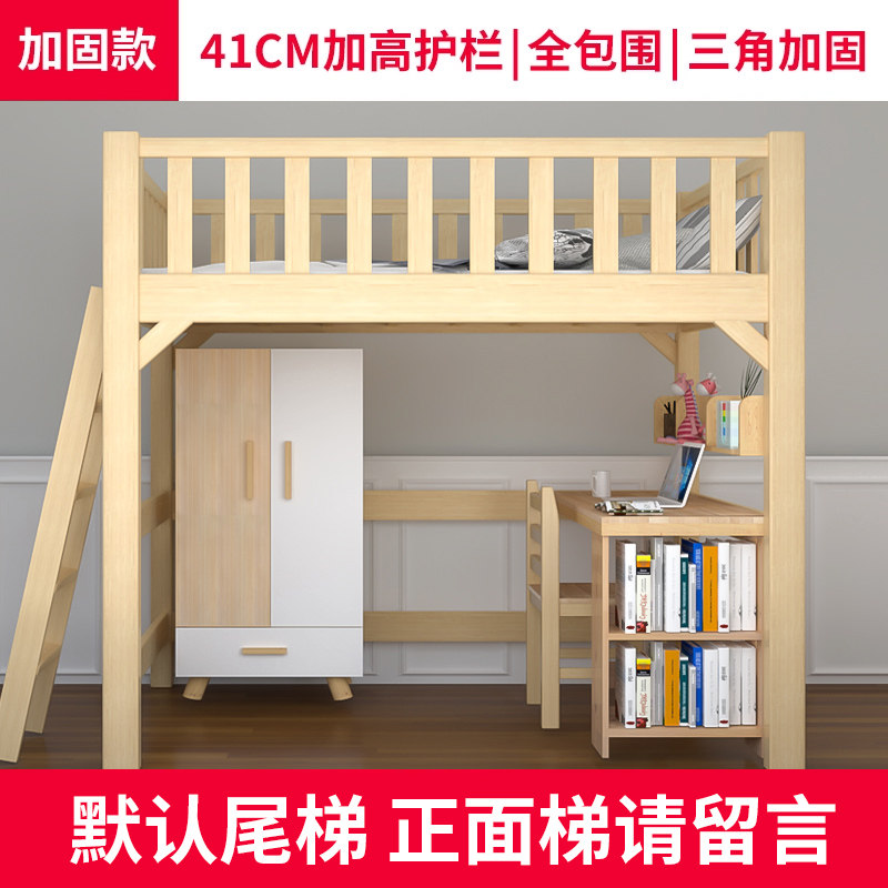 实木高架床单上层铺上床下空下桌书桌上层下空错位型交错式上下床