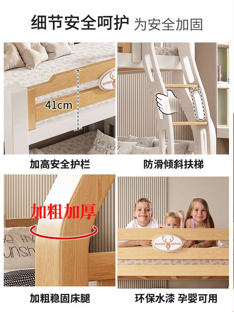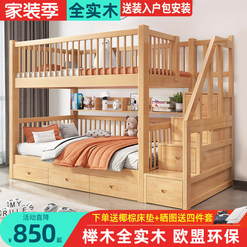 榉木上下床双层床全实木上下铺多功能子母床组合儿童高低床可定制