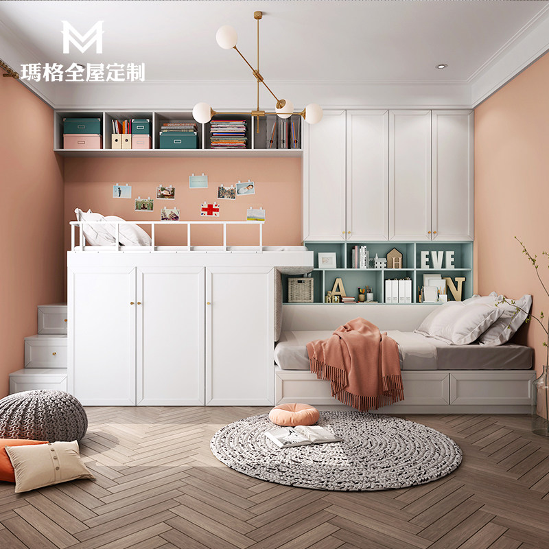玛格儿童房整体上下床榻榻米衣柜一体定制简欧双人高低上下铺组合