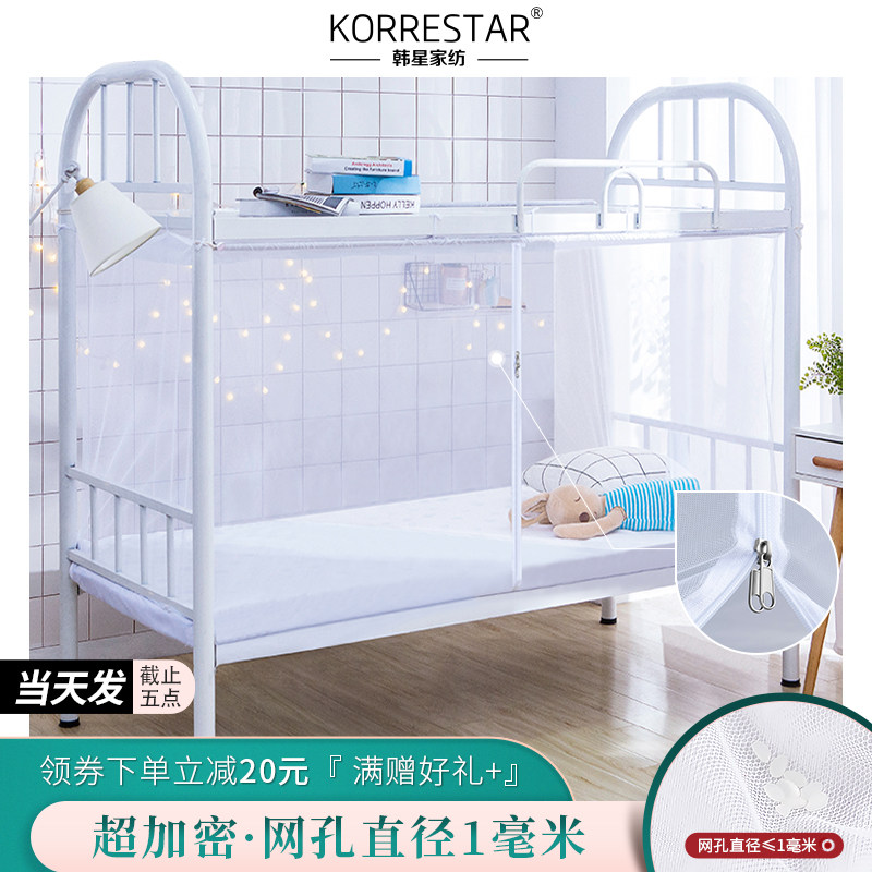 韩星白色住校蚊帐大学生宿舍专用单人上下床拉链90×190寝室下铺