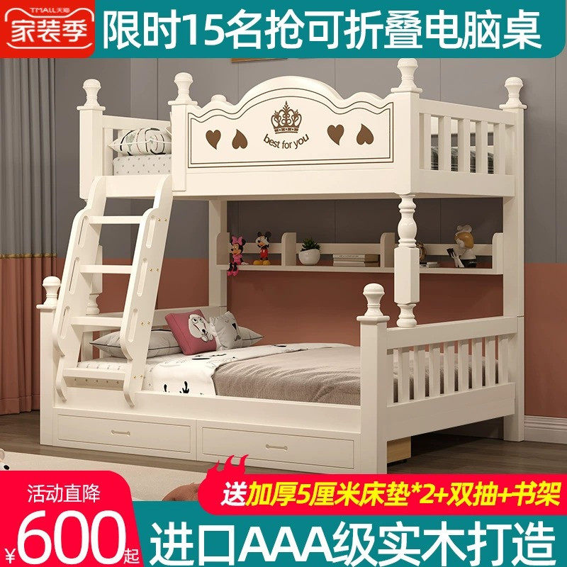 全实木高低床上下铺小户型床儿童床男孩多功能子母床上下床双层床