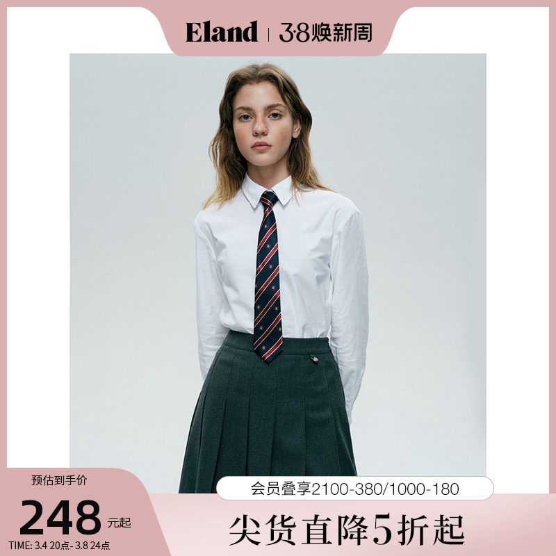 Eland衣恋衬衫女纯棉简约素雅休闲风精致时尚上衣女